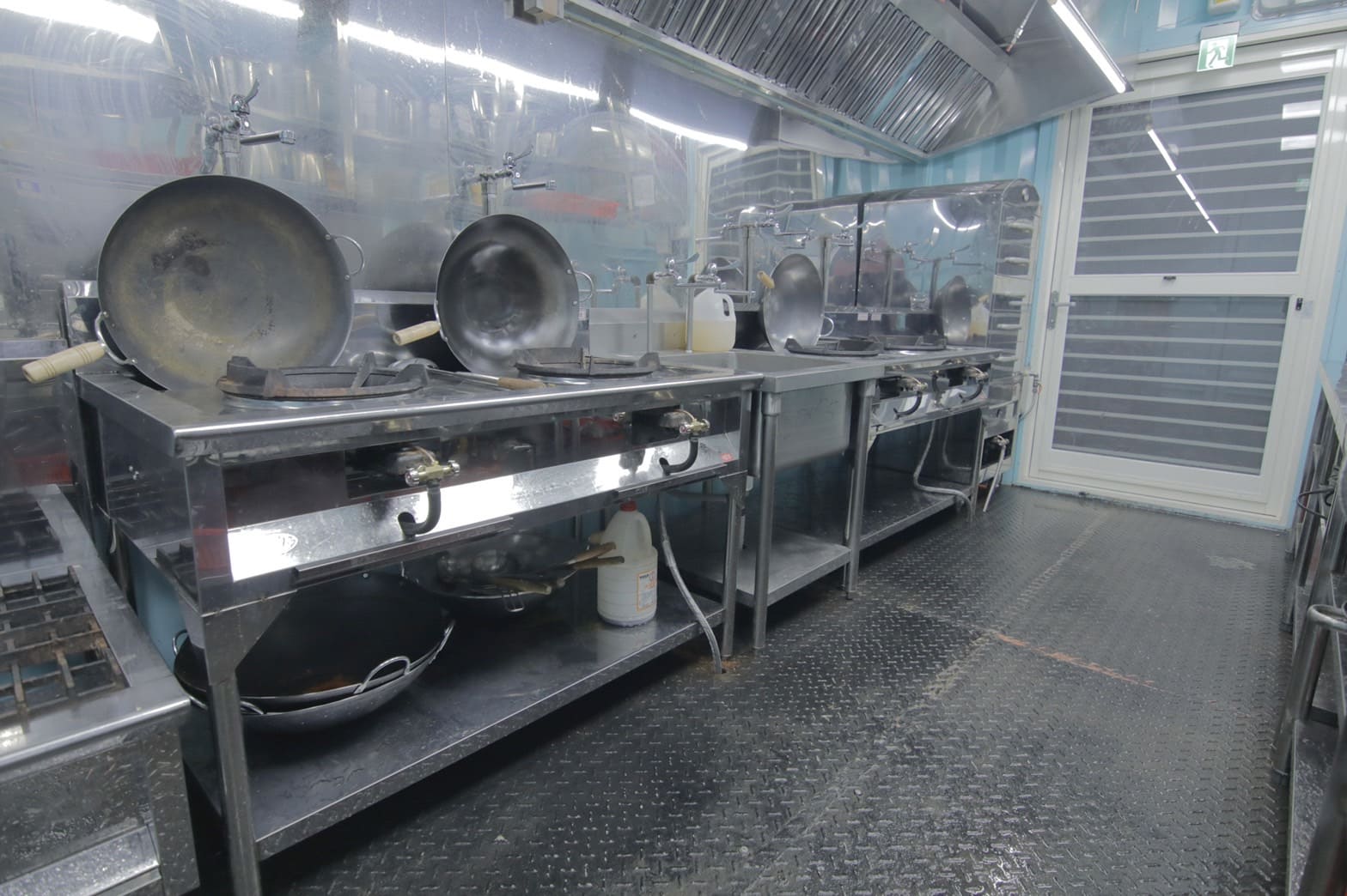 用40尺HQ中古貨櫃屋去對切,再分別用60*120鍍鋅扁管去加強及白鐵板封板收邊,抽風機及三合一鋁門開孔及安裝,並於花蓮貨櫃屋改裝現場進行定位及防水加強收邊。
