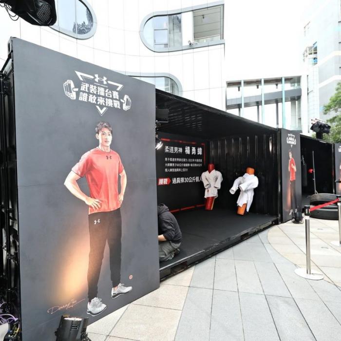 為迎接世界引頸期盼的體壇盛事,專業運動品牌UNDER ARMOUR上週末(10、11日)於三創生活園區戶外廣場利用回收之中古貨櫃打造高難度極限訓練盛會《UA武裝擂台賽 誰敢來挑戰》,召集運動愛好者一同突破極限、挑戰自己的紀錄!並於日前發出Team UA挑戰書,邀請台灣人氣Youtuber「蔡哥」、「關關 關韶文」分別於活動現場挑戰樂天女孩隊長 籃籃及UA Training教練 恬恬教練,除了為現場訓練愛好者示範全台最強UA訓練貨櫃設計關卡,也親授如何透過平日的訓練來突破自我、鍛鍊更強運動表現,搭配專業教練現場指導正確訓練觀念,現場吸引將近千名訓練愛好者齊聚朝聖,民眾也透過實際感受Team UA運動選手訓練強度向台灣頂尖運動選手致敬、力挺運動選手們挑戰體壇最高榮譽!