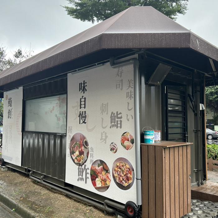 ❷活動內容概述:五股工業區五權路上為了提供工業區內眾多人員午餐需求,每到中午就有30~50台左右的餐車出現在現場,業主為日式料理店家,為了在眾多的餐車中脫穎而出、吸引目光,特地引進行銷新寵兒-貨櫃屋,將貨櫃屋改裝後,以符合日料餐飲形象的貨櫃設計,創造了話題性且吸引眾多人潮。