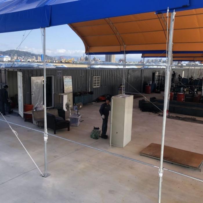 感謝大都會汽車客運與本公司購買16櫃貨櫃屋,購買的貨櫃尺寸為40呎長及8.5呎高的中古貨櫃屋,現場施作工程包括貨櫃屋裝潢以及貨櫃屋改裝,貨櫃屋到場定位後現場組櫃水平校正,於110年二月中旬完工。